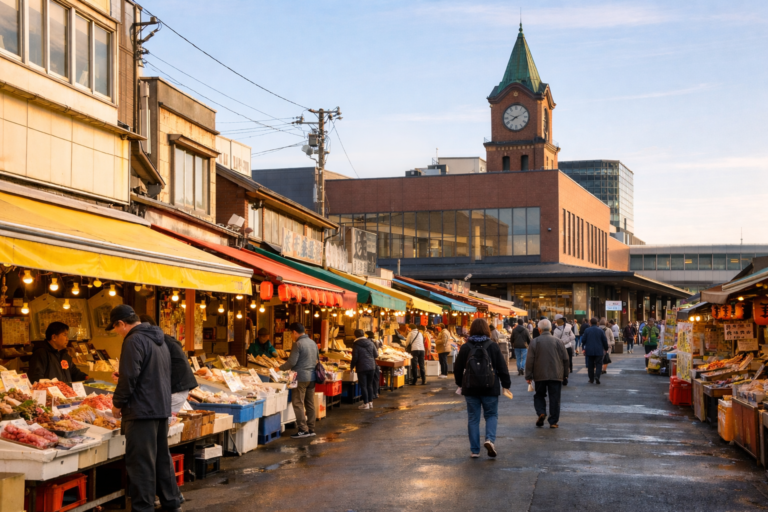函館駅から近く、朝市駐車場や周辺のカフェ・みやげ店も組み合わせやすいので、朝の早い時間に立ち寄って、その後に駅周辺を回る流れがきれいにまとまります。