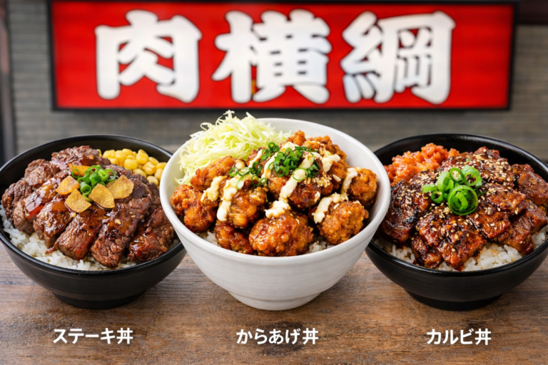 肉横綱のメニューは、ステーキ丼やカルビ丼、からあげ丼など、がっつり食べたい日にぴったりの肉系メニューが充実しています。とはいえ「どれが人気?」「函館ではどの店舗で頼める?」と迷う方も多いはず。