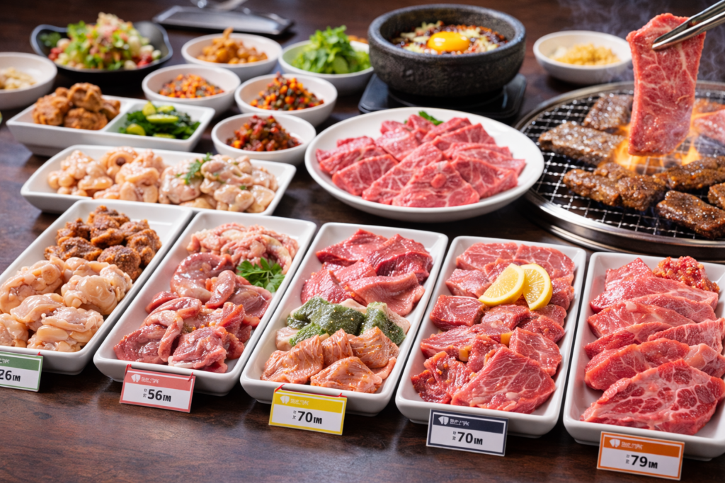 コスパ重視ならお手軽コース、初回利用なら満足コース、牛タンやサガリまで食べたいなら牛乃家食べ放題コース、和牛や上タンまで楽しみたいなら特選和牛コースが向いています。食べ放題はラストオーダーが20分前なので、最初に食べたい肉を決めておくと満足度が上がります。